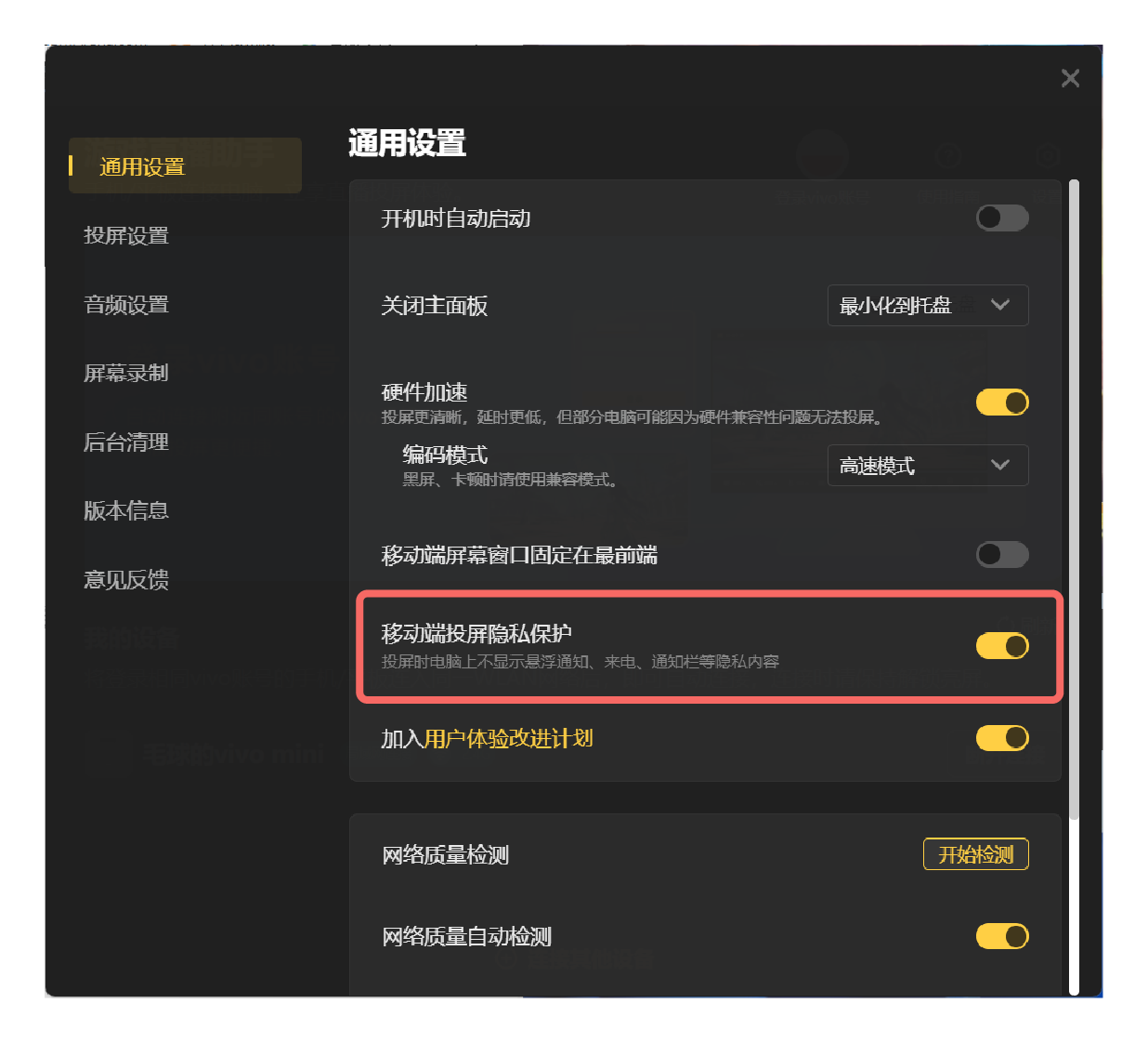 1. 移动端投屏隐私保护(默认开启)