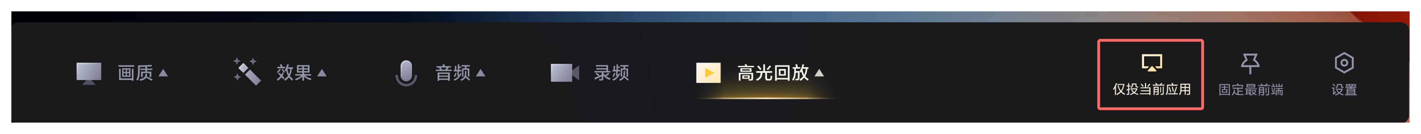 1)开启方法:投屏连接成功后,在投屏工具栏点击【仅投当前应用】。
